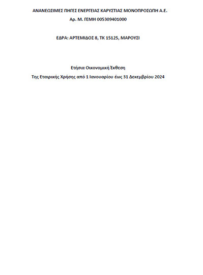 ΑΝΑΝΕΩΣΙΜΕΣ ΠΗΓΕΣ ΕΝΕΡΓΕΙΑΣ ΚΑΡΥΣΤΙΑΣ ΜΟΝΟΠΡΟΣΩΠΗ Α.Ε.